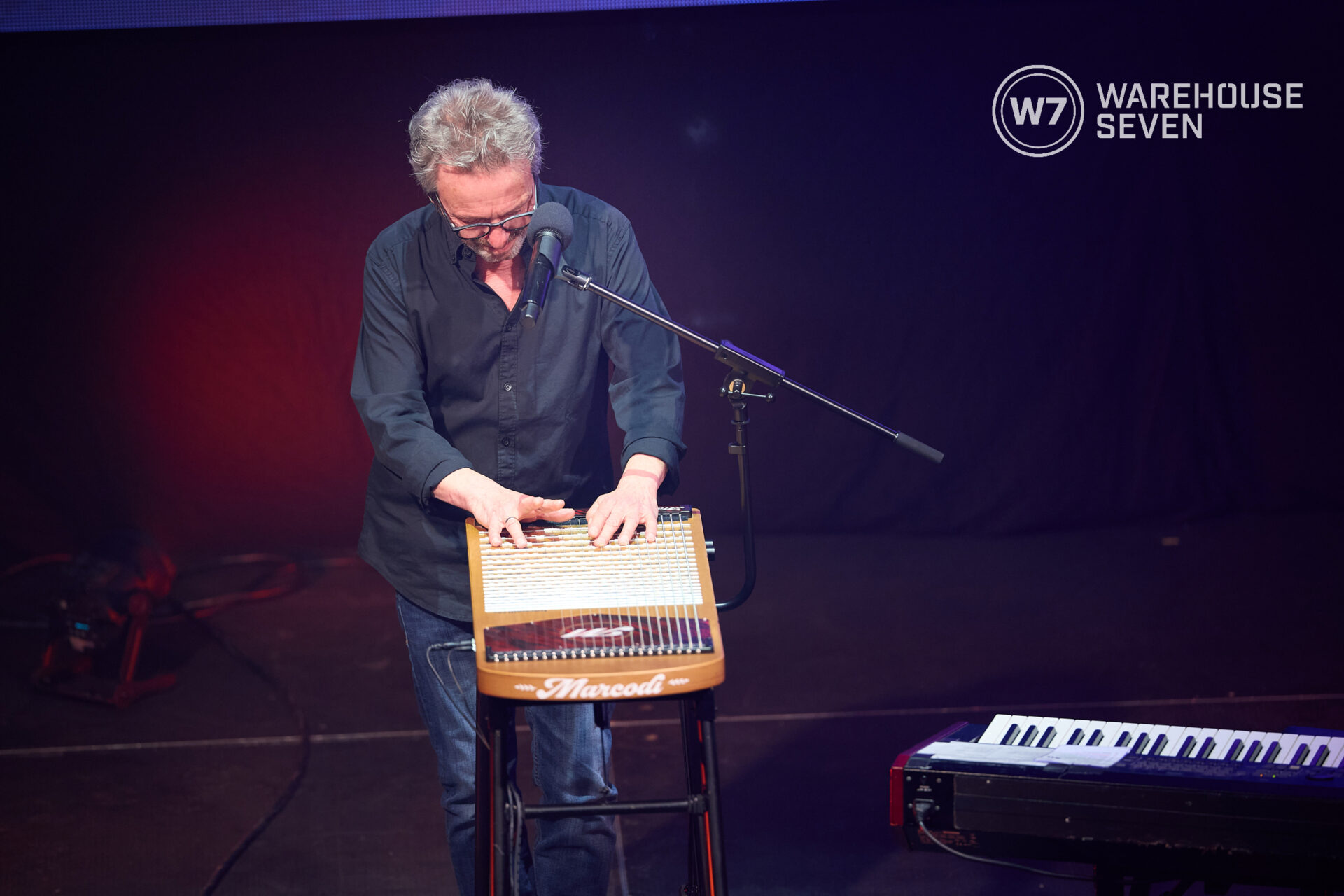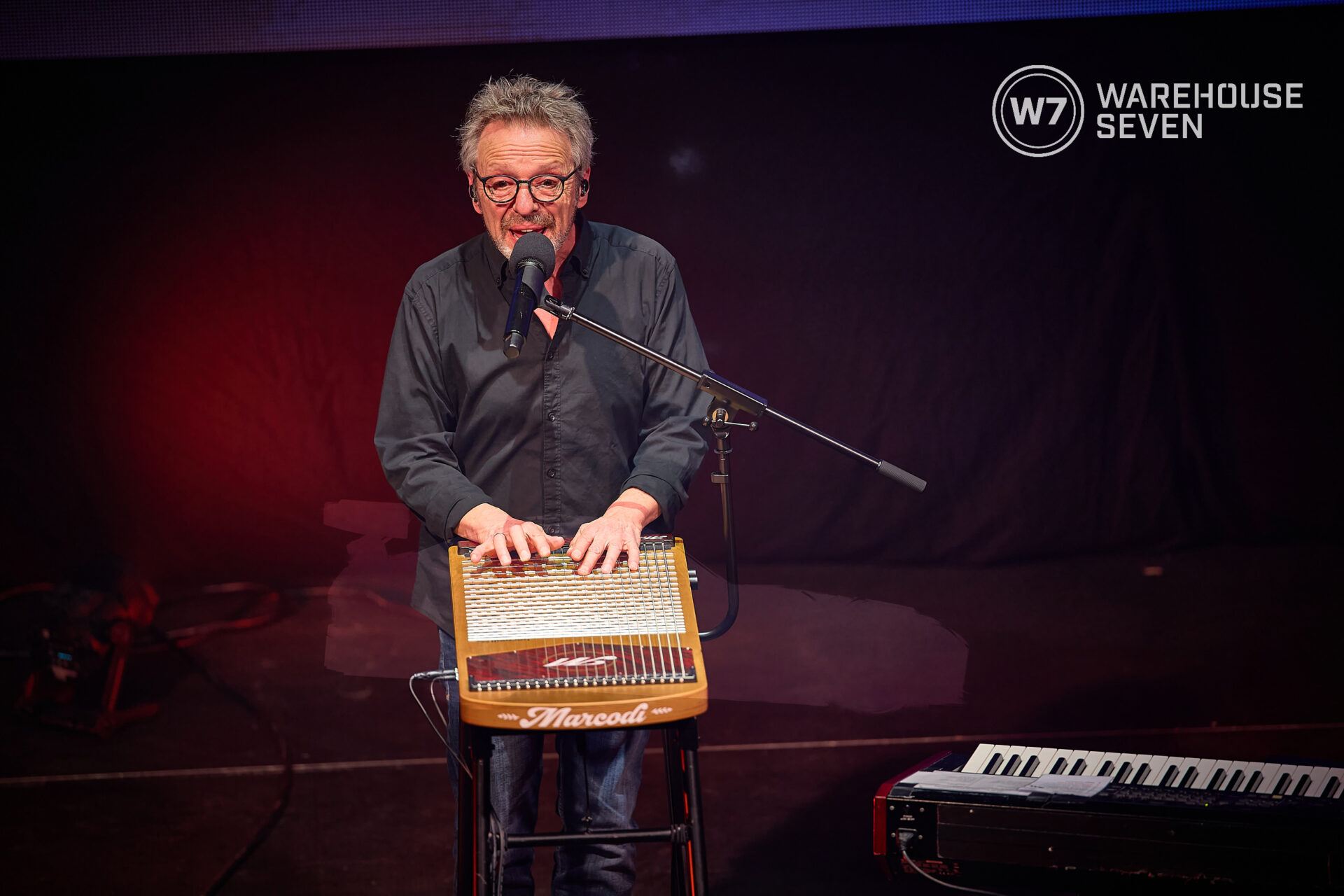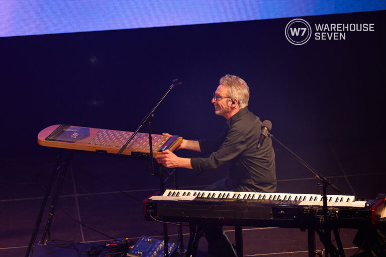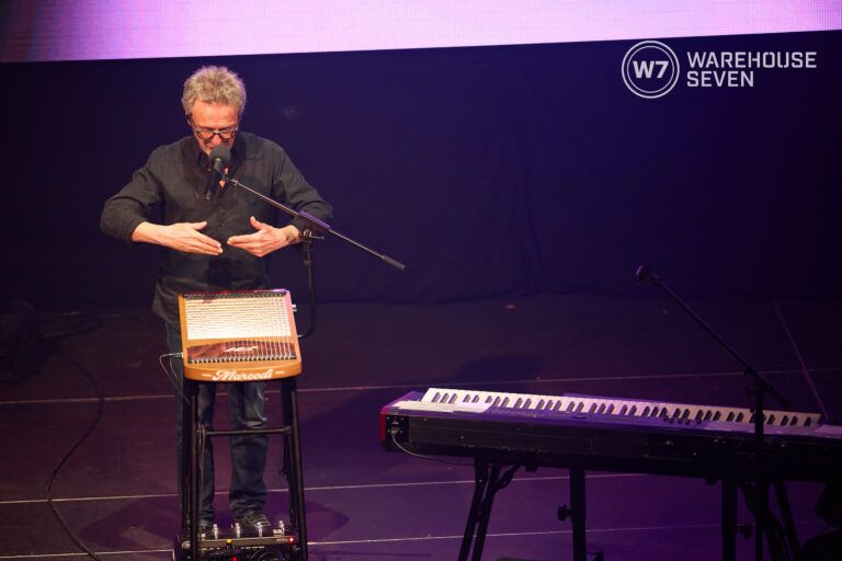 Musikalisch bleibt er unberechenbar beweglich, wechselt am Keyboard mühelos zwischen Pop, Chanson und kammermusikalischer Dichte. Und auf der 22-saitigen Harpejji – einer Kreuzung aus Klavier und Gitarre – entsteht ein Klang, der sofort wirkt: klar, nah, unverwechselbar. Ein Instrument, das man selten hört und nicht mehr vergisst.