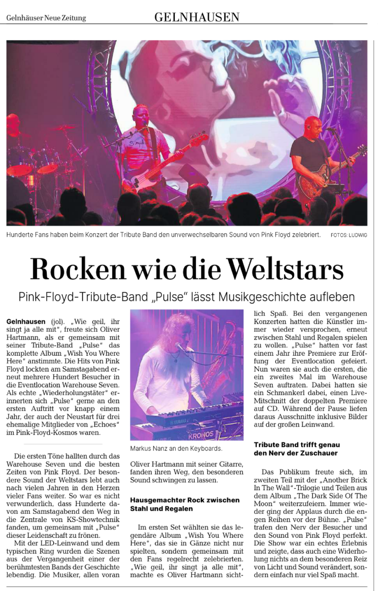 Im Oktober 2024 erschien das neue Album Live At Warehouse 7 mit dem PULSE beim Eröffnungskonzert im Warehouse beweist, dass auch echte und detailversessene Pink Floyd Fans voll auf ihre Kosten kommen.